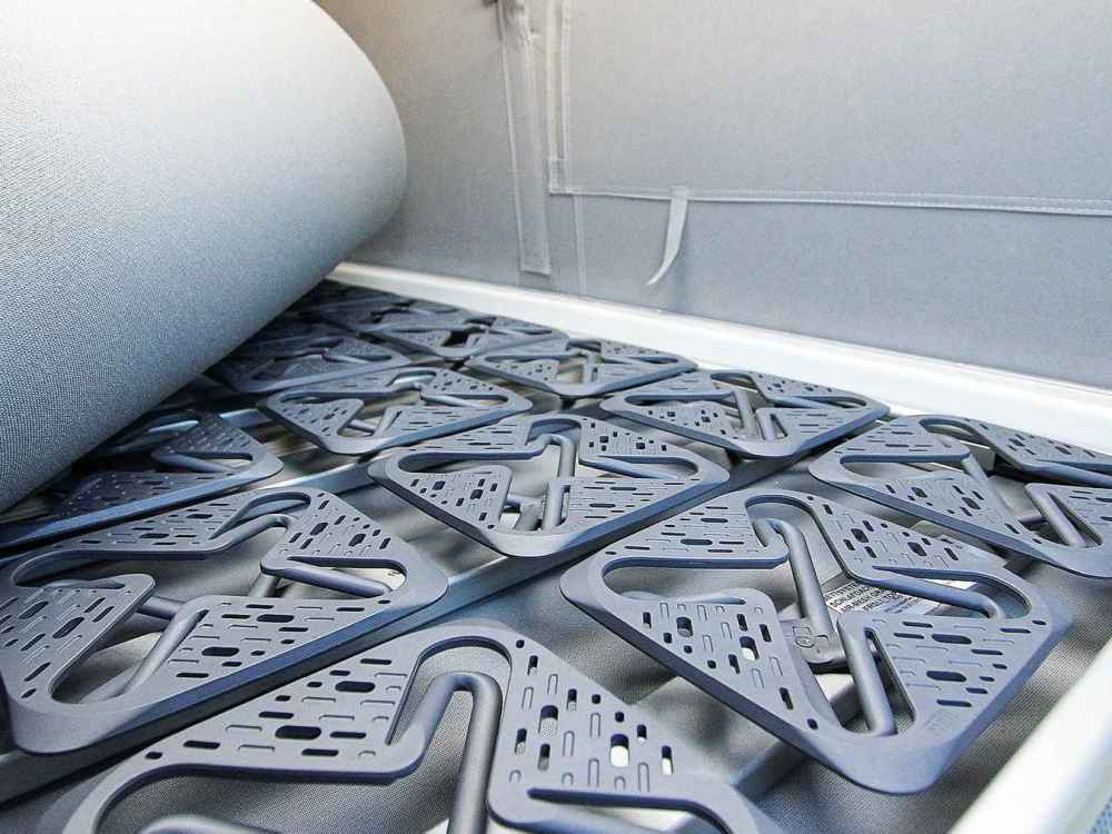 Auch der Komfort beim Schlafen und Liegen bleibt nicht auf der Strecke, denn die bequeme Liege ist mit flexiblen Tellerfedern ausgestattet und befindet sich in einem leichten Aluminium Lattenrost.